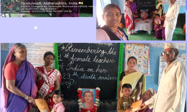 या मंगलमयी प्रसंगी अंगणवाडीच्या सेविका प्रिया तेजकोर प्रकाश खरात यांनी सावित्रीमाईंच्या जीवनपटावर प्रकाश टाकला. त्यांना मदतनीस सौ. साधना राजरत्न खरात यांनी मोलाचे सहकार्य केले. कार्यक्रमात चिमुकल्या विद्यार्थ्यांनीही ‘सावित्री फुले यांच्या बद्दल कृतज्ञता व्यक्त केली. यावेळी विद्यार्थी: कोहिनूर खरात, वेदिका नागरे तसेच पालक वर्ग: धोंडिबा नागरे, दरूबाई खरात, सुनिता खरात आणि जागृती काळे उपस्थित होते.केवळ औपचारिकता न पाळता, सावित्रीबाईंच्या विचारांचा वारसा पुढे नेण्याचा संकल्प यावेळी पालक आणि सेविकांनी केला. ग्रामीण भागातील मुलींच्या शिक्षणासाठी सावित्रीमाईंचे कार्य आजही प्रेरणादायी असल्याचे मत उपस्थित पालकांनी व्यक्त केले. अत्यंत साध्या पण प्रभावी पद्धतीने पार पडलेल्या या कार्यक्रमाने तांदुळवाडी परिसरात ज्ञानाचा जागर पुन्हा एकदा प्रज्वलित केला आहे.